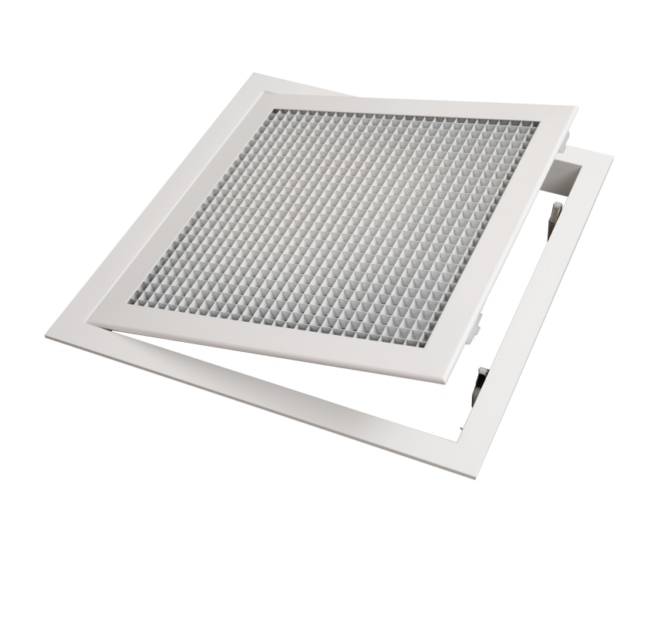 Kare petekli müdahale kapağı, tesisat ve havalandırma sistemlerine kolay erişim sağlamak amacıyla tasarlanmıştır. Petekli yapısı sayesinde hava geçişine izin verirken, estetik ve düzenli bir görünüm sunar.